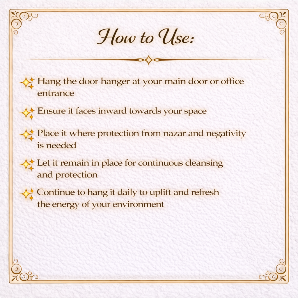 Hung facing inward at your main door or office entry, it will guard your space from unwanted energies and will create a strong shield at the entrance. This door hanger not only protects but also uplifts and refreshes your environment.