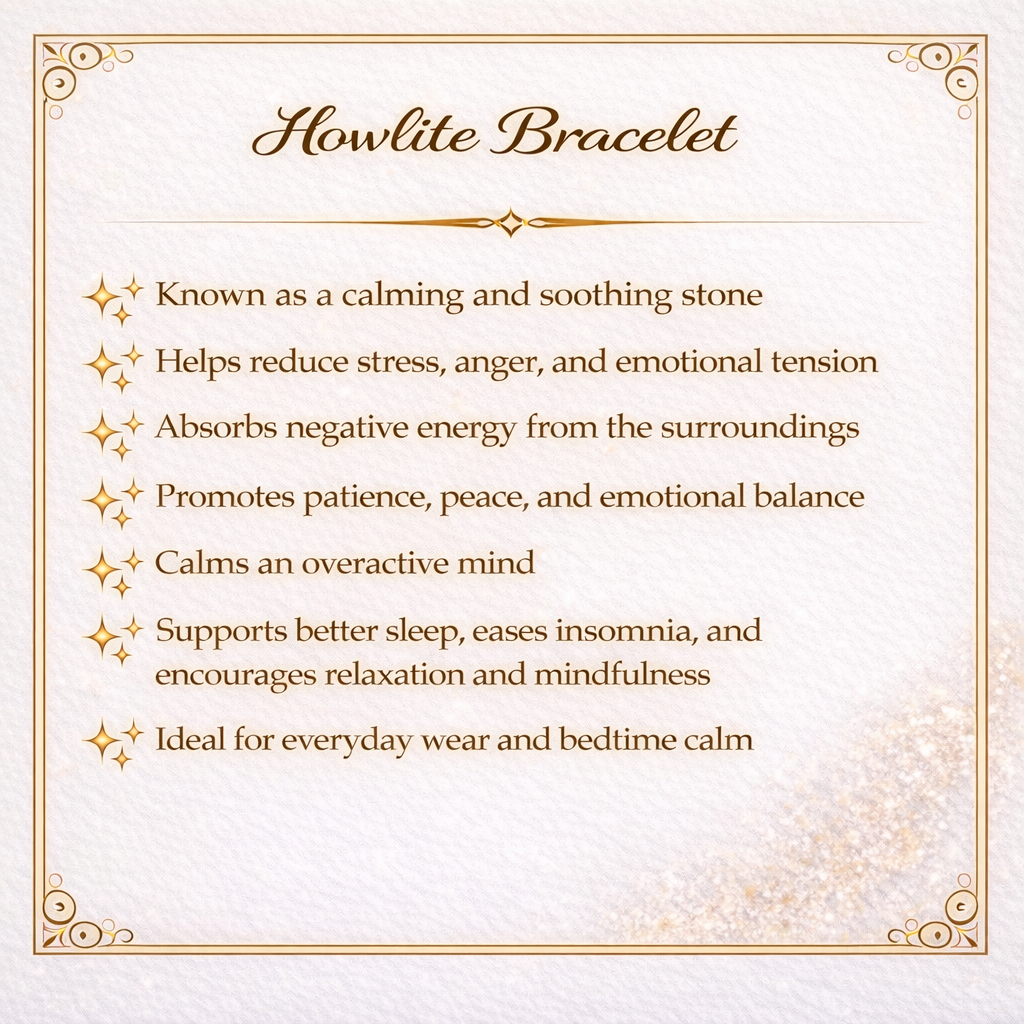 The Howlite Bracelet is a soothing companion for calm and emotional balance.