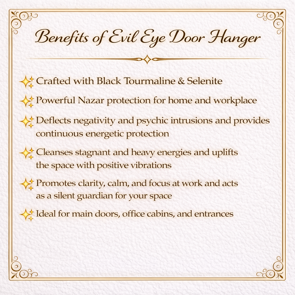 The Evil Eye Door Hanger is designed to guard your space while elevating its energy as it is crafted with the powerful duo of Black Tourmaline and Selenite.